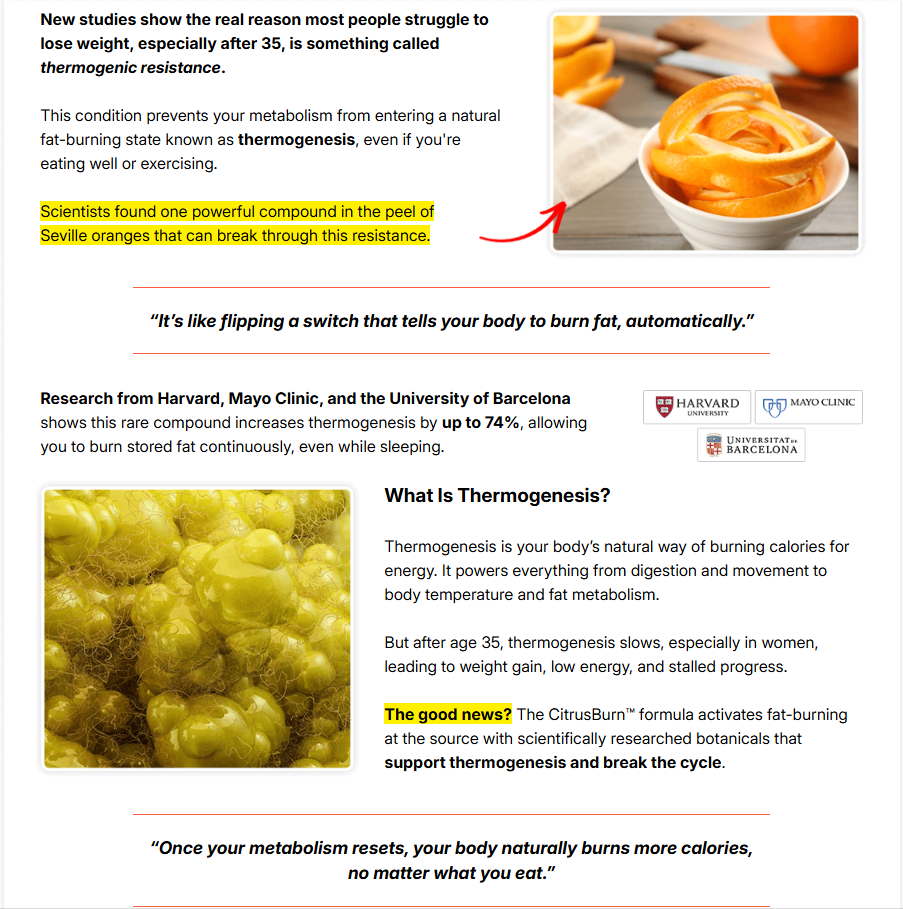 CitrusBurn’s operation is based on adaptive thermogenesis, a process where the body converts calories into thermal energy.The major difference is that it focuses on activating brown adipose tissue (BAT), which is known as the “good fat” that burns calories.