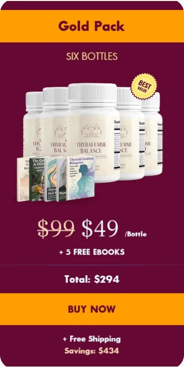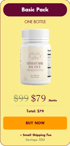 At this moment you can order Thyrafemme Balance supplement for 64% OFF + FREE Shipping. This is a Limited-Time Offer and it won’t be available for long.